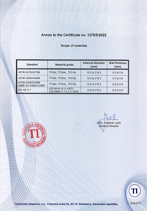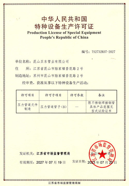 目前公司擁有硬體設備為NC數控焊管機搭配氬弧焊機、在線感應式熱處理機、光亮在線熱處理機、內焊道整平機及渦流探傷機等,可達到“焊管無縫化”的最大工藝要求。主要從事換熱管、食品管、電子潔凈管、醫療衛生管的生產和銷售。
